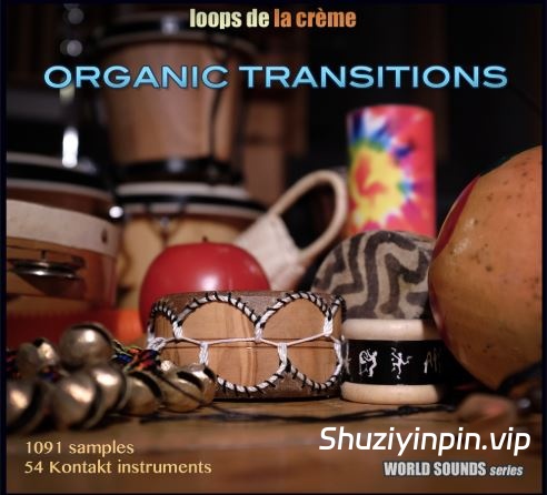 ORGANIC TRANSITIONS 包含一套独特的采样集,采用沙铃、摇铃、铃鼓、钹、鼓和多种罕见的异国打击乐器制作而成,将成为您音响工具的绝佳补充!