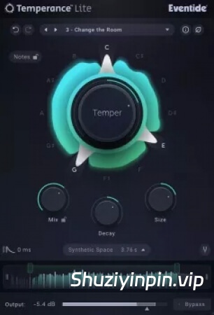 Temperance Lite represents the next step for reverb technology, offering a new approach to shape ambiance. It responds to the language of music, encouraging you to explore reverb in a new way. Unlike a traditional algorithmic or convolution reverb, Temperance Lite lets you control reverb resonances using the familiar 12-note chromatic scale. This allows you to choose which notes bloom or wither within your chosen space, creating musical ambiances that were previously unattainable