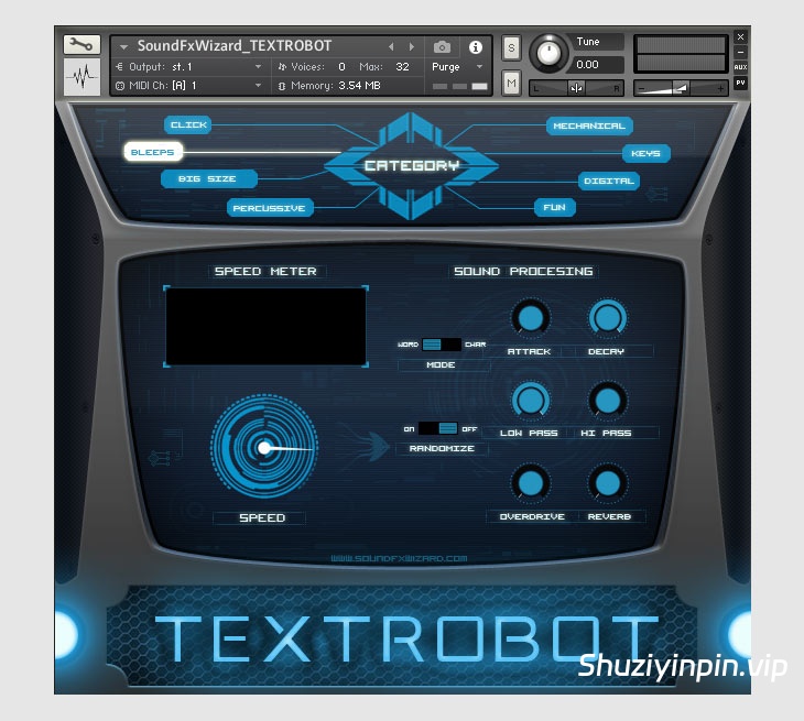 TEXTROBOT 是一款 NI Kontakt 乐器,旨在帮助您设计 UI 声音,并为 VFX 文本动画制作可重触发的采样。