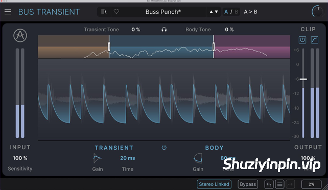 Bus TRANSIENT 是一款专业的瞬态整形器,可让您即时控制声音的起音和延音。从较紧凑的鼓点到更具冲击力的混音,它都能通过直观的界面和清晰的视觉反馈提供快速的音乐效果。经过精细调整的起音和主体控制可让您获得精确、即时的冲击力和重量,并具有多频段精度。突出小军鼓、收紧轰隆隆的低音或为声音单薄的乐器添加一些主体。内置的软/硬限幅器可管理峰值并增加特性。保持音源响亮而不会引入不必要的刺耳声 – 驱动时增加温暖和饱和度。